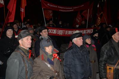 Центральное мероприятие состоялось в сквере Героев Революции, куда собрались около 300 жителей города. Перед собравшимися выступили лидеры КПРФ в Новосибирске, включая первого секретаря областного комитета, мэра Анатолия Локтя.