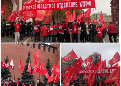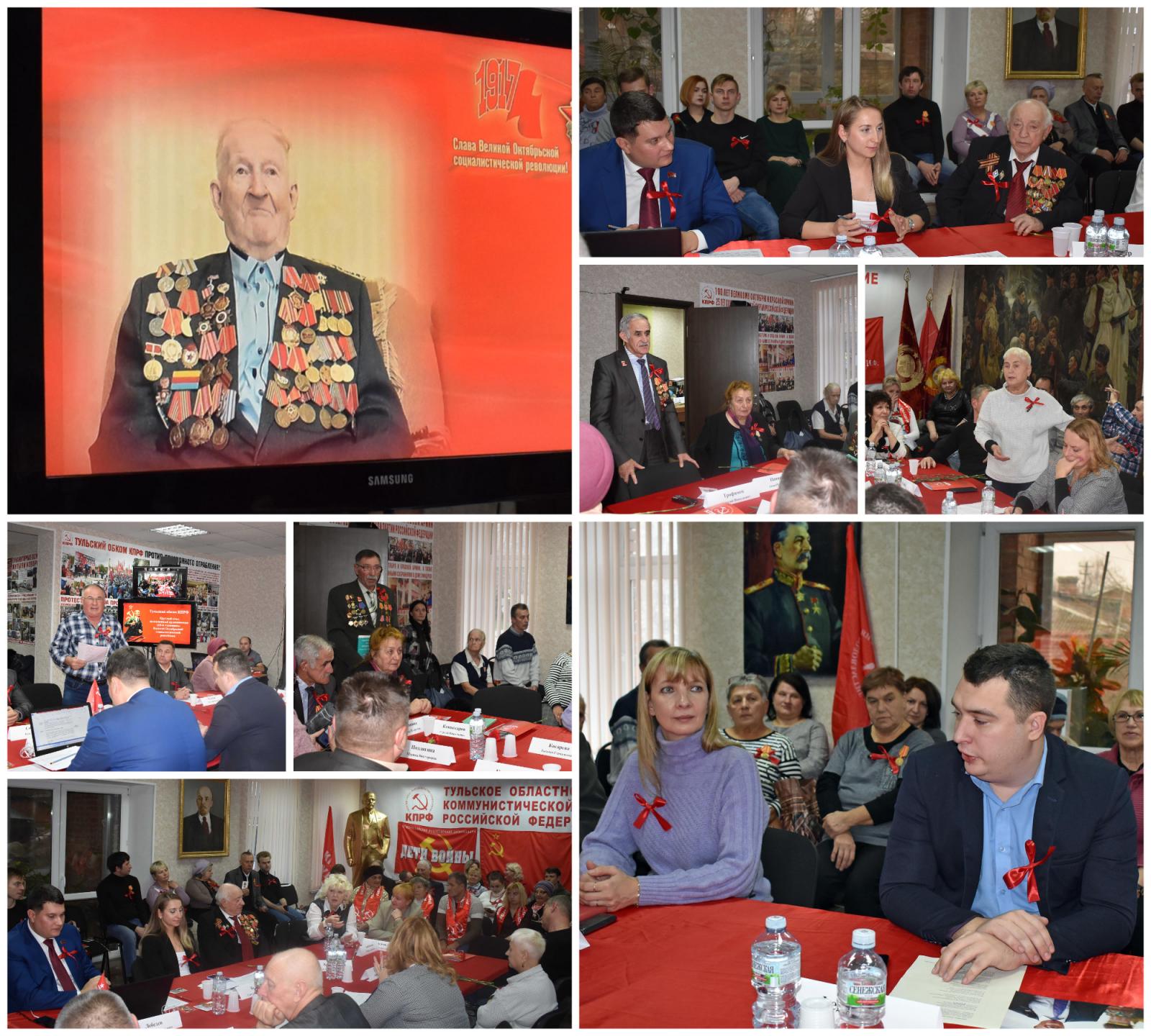 В День 105-летия Октябрьской социалистической революции возложения цветов прошли у памятников основателю Советского государства и коммунистической партии Владимиру Ильичу Ленину по всей Тульской области. Кроме того, в честь Дня 7 ноября из подмосковного совхоза имени Ленина отправился 103-й гуманитарный конвой от КПРФ на Донбасс, в составе которого был груз от Тульской области. В формировании тульского груза активное участие приняли фермеры-коммунисты (слова благодарности коммунисту Владимиру Викторовичу Алейникову), тульский картофель попадёт на столы мирного населения и наших бойцов в республиках ЛНР и ДНР. Кроме того, депутат-коммунист Тульской городской Думы Сергей Комлев принял участие в формировании хирургических наборов для госпиталей, сборе медикаментов.
