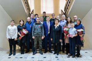 В торжественной обстановке руководитель региона вручил нашим землякам, отличившимся в ходе проведения спецоперации, тем, кто на передовой противостоит нацизму и бандеровщине, высокие государственные награды: медаль ордена «За заслуги перед Отечеством» II степени и медаль «За отвагу».