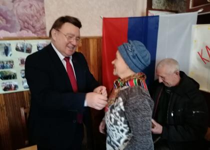 Затем Н.Н. Иванов вручил медали ЦК КПРФ в ознаменование 100-летия образования СССР активистам партии Ю.М. Коняеву и В.И. Выводцевой, много делающих для районной партийной организации и во время выборных кампаний.