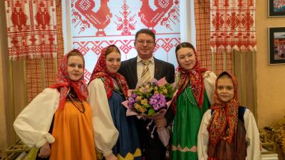 За значительный вклад в сохранение культурно-исторического наследия А.Н. Бобовников вручил коллективу Дома народного творчества Благодарственное письмо депутата Государственной Думы Н.Н. Иванова и букет цветов.