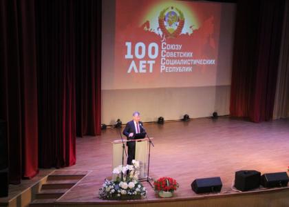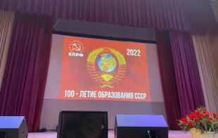 Накануне в Великом Новгороде в Культурном центре «Диалог» состоялось торжественное мероприятие, организованное Новгородским областным отделением КПРФ, посвящённое 100-летию образования Союза Советских Социалистических Республик. Ведущими праздничной программы были первый секретарь Новгородского обкома КПРФ Ольга Ефимова и второй секретарь областного Комитета партии Никита Макаревич. С поздравлениями к новгородским коммунистам от Центрального Комитета КПРФ выступили заместитель Председателя ЦК КПРФ Дмитрий Новиков и советник Председателя ЦК КПРФ Маргарита Образцова.