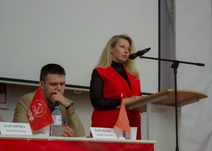 С приветственным словом выступила первый секретарь Пермского краевого Комитета КПРФ Ксения Айтакова: «100 лет назад свершилось всемирно-историческое событие. Первый Всесоюзный съезд Советов провозгласил Союз Советских Социалистических Республик. Экономика СССР в первые три десятилетия своего существования, в среднем росла почти на 14% ежегодно. Это результат, который не смогло повторить ни одно государство на планете. План ГОЭЛРО стал основой для мощного индустриального рывка. Созданные тогда электростанции и сейчас снабжают энергией города и сёла России, Белоруссии, Украины, Средней Азии и Кавказа», – отметила в своём докладе Ксения Алексеевна.