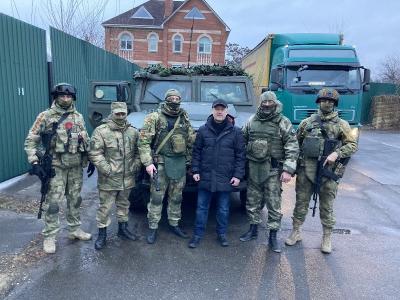 Анатолий Локоть встретился с представителями Новосибирской области в Беловодском районе ЛНР —Сергеем Владимировичем Донодаевым и Виталием Петровичем Резаковым. После чего посетили расположение новосибирского отряда Национальной гвардии «Ермак», пообщались с бойцами, посмотрели их быт, а также передали подарки и письма от жителей Новосибирска.