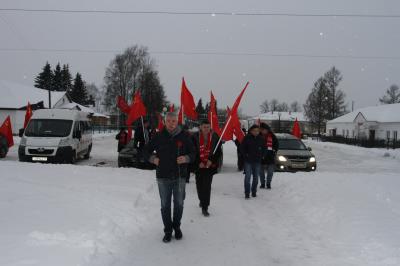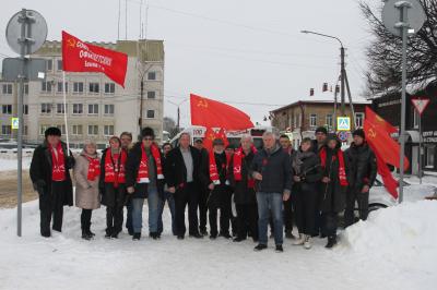 Дальше наши товарищи поехали в посёлок Караваево, где возложили цветы к памятникам героям Советского Союза. По пути следования нам сигналили проезжающие мимо машины, а прохожие приветственно махали руками. Во время возложения цветов одна женщина поблагодарила товарищей за то, что не забываем героев советского времени. Такой отклик со стороны костромичей — верный признак того, что победа обязательно будет за нами.