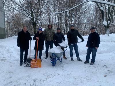 В Подмосковном Обкоме прошел субботник по уборке территории от снегопада