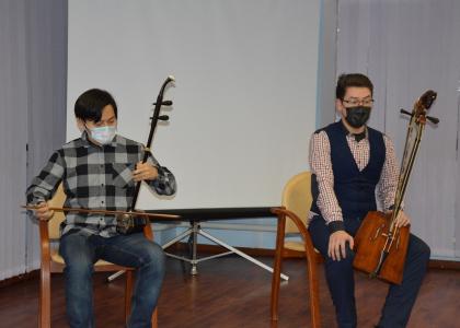 Музыкальные композиции собравшимся подарили студент Колледжа искусств им. П. О. Чонкушова Мерген Манджиев и артист Государственного академического ансамбля песни и танца Калмыкии «Тюльпан» Виталий Ачиров. Молодые калмыцкие артисты продемонстрировали виртуозное, прекрасное исполнение мёрн хур-айс, в которых можно было услышать шум степного ветра, ржание лошадей, нежный шелест трав. Игре на национальном народном инструменте ребят обучил проживающий в Калмыкии уроженец СУАР КНР Намджил-багш.