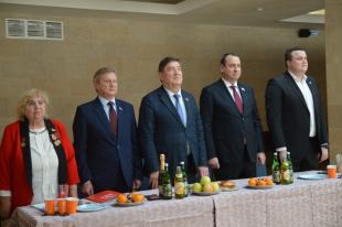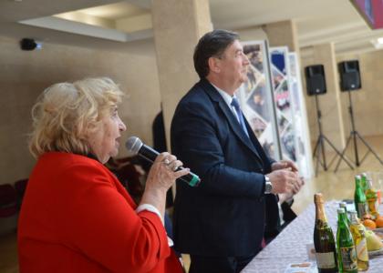 Участников в фойе встречал духовой оркестр. Празднество началось с исполнения Гимна Советского Союза. Ведущая Евгения Азизова первое слово предоставила руководителю городской организации КПРФ А.В. Поздняковой.