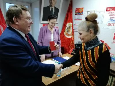 Пленум открыла 1-й секретарь Щигровского местного отделения КПРФ Т.И. Желдубовская. По сложившейся традиции мероприятие началось с вручения партийных билетов вновь вступившим. Их вручил Н.Н. Иванов.