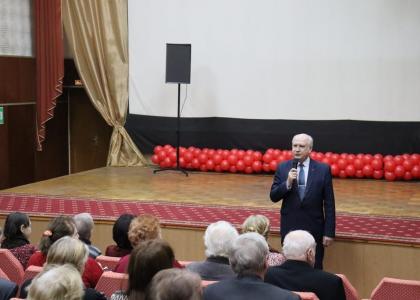 — Уважаемые друзья, товарищи! Великое всегда видится на расстоянии! Через несколько дней мы будем отмечать великую дату – дату образования СССР, 100-летие нашей Советской Родины. Большинство сидящих в зале – советские люди, у которых насильственно отняли государство путем обмана. И за все прошедшие 30 лет жизни при капитализме мы стали людьми, которые нынешней власти не нужны. Сегодня власти предержащие распыляются только оголтелым антисоветизмом, позабыв о народном благосостоянии. В свою очередь, Советский Союз дал пример многим странам, как люди труда могут защищать свои права и жить в свободной стране. В отличие от правительства, партии власти и либеральной оппозиции, мы, коммунисты, не занимаемся демагогией и голословными обещаниями. И молодежь, видя это, активно вступает в наши ряды, продолжая наше правое дело – борьбу за социальную справедливость! С праздником, дорогие друзья! — открыл праздничный концерт Михаил Константинович.