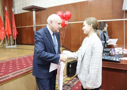 Обком КПРФ совместно с Ленинским Комсомолом регулярно проводит творческие конкурсы среди молодежи. А, потому, в ходе мероприятия состоялось награждение юных участников областного конкурса плакатов «Наш героический комсомол», работы которых украсили стены конференц-зала. Также грамоты и подарки от обкома КПРФ получили призеры конкурса «СССР — великая страна» в трех номинациях: «Сочинение», «Изобразительное искусство» и «Семейный альбом».