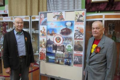 А заместитель председателя общества краеведов В.В. Илюхин, обеспечивший прекрасное иллюстрирование докладов, подарил присутствующим значки «Я рожден в Советском Союзе» , сделанные по его эскизам.
