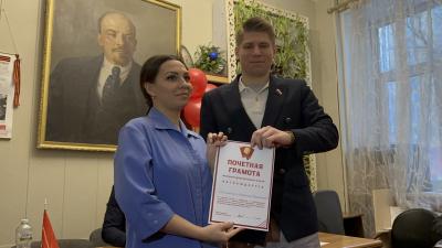 По поручению первого секретаря люберецкого ГК КПРФ Василия Бызова состоялось награждение активистов общества медалями ЦК КПРФ «В ознаменование 100-летия образования СССР» и грамотами общества.