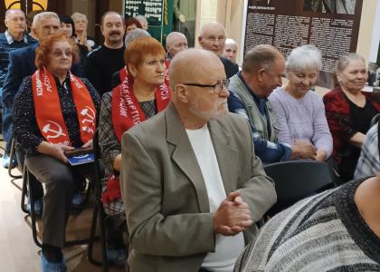 Своё видение сути советской эпохи высказал также секретарь местного отделения КПРФ С.В. Стрижов. Воспоминаниями о своей жизни в СССР поделились ветераны партии Ю.А. Труфакин и Л.А. Климкова.