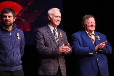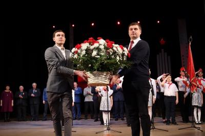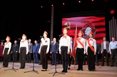 А.Е. Клычков и В.Н. Иконников наградили партийных активистов медалями и орденами КПРФ. Участников торжественного собрания поздравили юные пионеры, и здесь же были произнесены слова пионерской клятвы вновь вступившими в ряды пионерской организации мальчишками и девчонками. Красные галстуки пионерам повязали Андрей Клычков и Василий Иконников.