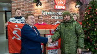 - Сегодня, принимая в областном комитете коммуниста, мобилизованного осенью ушедшего года, бывшего первого секретаря областной комсомольской организации, члена Центрального Комитета Комсомола начала 2000-х годов Вадима Сергеева, мы гордимся тем, что он сражается за денацификацию Украины. Курская область выполнила план по мобилизации военнослужащих, ушли воевать с бандеровщиной в том числе коммунисты, комсомольцы и наши сторонники. Мы оказываем им помощь и внимание в первую очередь. Ранее возили квадракоптеры, тепловизоры и обязательно, конечно, красные знамена. Когда над танками и бронетранспортерами военных, идущих в наступление, развеваются красные флаги, вполне возможно, что они и от Курского ОК КПРФ. Вадим Сергеев добровольно ушел для участия в СВО. Мы воспользовались тем, что он прибыл в родной Курск на побывку перед отправкой за «ленту», и собрали для него гостинцы – теплые вещи, необходимые продукты питания, которые он повезет в часть, своим сослуживцам. А на днях готовится гуманитарный груз, который мы сами доставим на границу с Сумской областью, туда, где отдыхают наши бойцы и где мы побывали уже не раз. Кроме этого, мы, безусловно, оказываем помощь беженцам, которые проживают на территории Курской области. А перед самым новогодним праздником поздравили сотни ребятишек, которые встречали новый год не дома, а в пансионатах, пионерских лагерях, - там, где они сегодня вынужденно проживают. Это наша системная работа. Но это – лишь частичка той большой работы, которую проводит Курский ОК КПРФ.