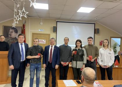 По традиции, в начале встречи, было вручено 5 партийных билетов молодым коммунистам.