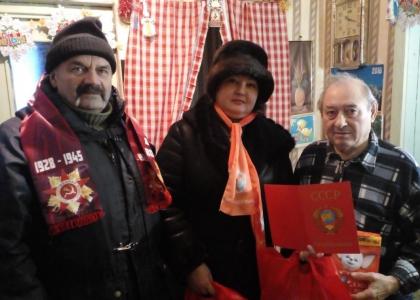 К сожалению, многие из ветеранов, в силу своего возраста и состояния здоровья не смогли присутствовать на торжестве, поэтому первый секретарь Комитета Евгений Бабин вместе с секретарем Комитета Валентином Матыциным, навестили ветеранов на дому и вручили им Памятные медали ЦК КПРФ в честь 100 летия образования СССР, а так же продуктовые наборы к новогоднему столу.