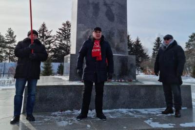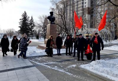 Сегодня в Благовещенске прошло памятное мероприятие, посвящённое 99-й годовщине со дня смерти Владимира Ильича Ленина — вождя мирового пролетариата, создателя первого в мире государства рабочих и крестьян, основателя большевистской партии. По этому случаю на центральной площади амурской столицы собрались активисты благовещенского горкома КПРФ и Ленинского Комсомола, беспартийные сторонники коммунистических идей.
