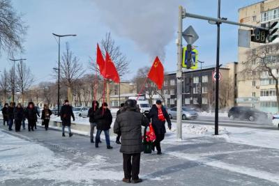 Сбор колонны проходил до полудня в сквере возле монумента амурскому революционеру Фёдору Мухину. Развернув алые флаги и взяв в руки красные гвоздики, участники памятной акции организовано выдвинулись в сторону памятника В.И. Ленину. Возглавили колонну первые секретари Амурского обкома и Благовещенского горкома КПРФ Роман Кобызов и Кирилл Тандуров.