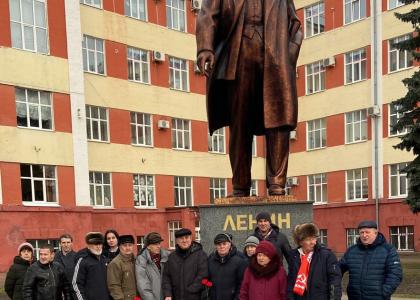 К полудню у памятника вождю мирового пролетариата в Советском районе города вновь появились красные знамёна. Те, кому дорого наследие В.И. Ленина, пришли почтить его память.