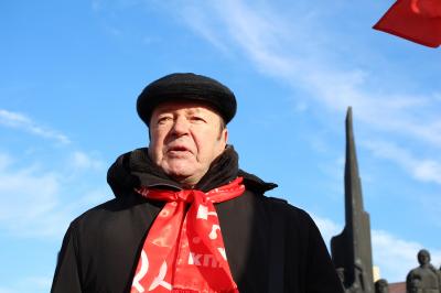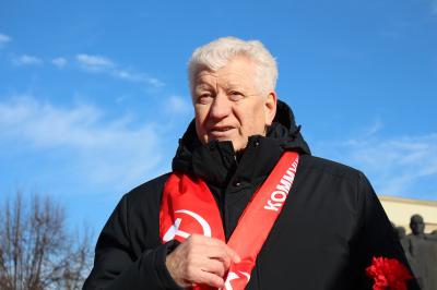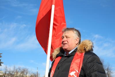 К собравшимся обратился первый секретарь Воронежского обкома КПРФ Андрей Рогатнев.