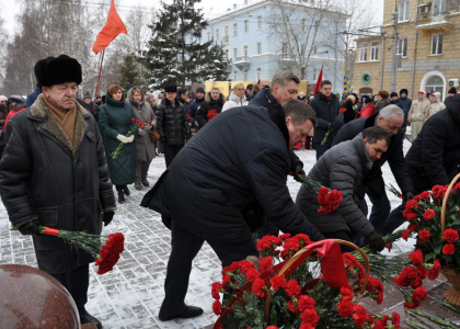 Мэр Новосибирска, первый секретарь Новосибирского обкома КПРФ Анатолий Локоть, вице-спикер Законодательного Собрания Новосибирской области Владимир Карпов возложили цветы к стеле трудовому подвигу ленинградцев, эвакуированных в Новосибирск в годы Великой Отечественной войны.
