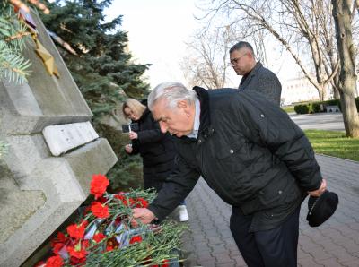 После церемонии возложения перед собравшимися выступил первый секретарь Севастопольского ГК КПРФ Василий Михайлович Пархоменко. Василий Михайлович рассказал, что Ленинград — это особая страница в истории, являющая собой подвиг бойцов Красной Армии и гражданского населения. Стойкость ленинградцев, их воля к жизни достойны восхищения - даже в эти страшные дни блокады в городе продолжалась жизнь, люди оставались людьми, работали, учились и создавали семьи. Голод, мороз, бомбардировки, отсутствие элементарных условий для жизни – ничего не сломило народный дух. Ленинград выстоял, а ленинградцы стали олицетворением мужества отваги и стойкости.