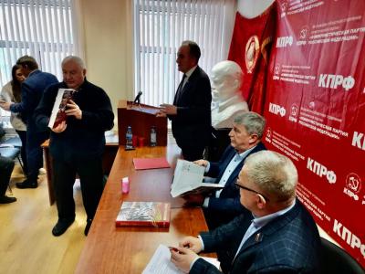 Первый секретарь Красногорского ГК КПРФ Е.А. Добровольский вручил секретарям МК КПРФ книги о жителях Красногорска, которые были участниками ВОВ, детьми войны.