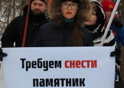 Левопатриотические силы провели в Пензе акцию с требованием демонтировать памятник белочешским интервентам, которые 105 лет назад устроили мятеж в нашем городе, в результате чего погибли, в том числе, и мирные жители.