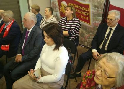 Перед началом мероприятия присутствующих членов областного Комитета и секретарей районных партийных организаций поздравила с юбилеем первый секретарь Новгородского обкома КПРФ О.А. Ефимова. После, по традиции, были вручены партийные билеты новым членам партии Новгородского городского отделения КПРФ, и отмечен Благодарственным письмом обкома партии депутат Успенского сельского поселения Кутев Алексей.