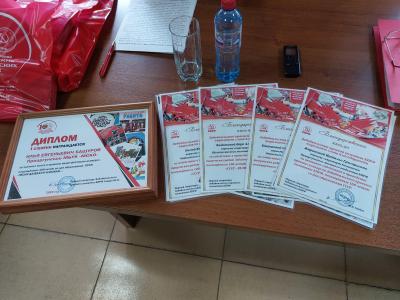 Далее второй секретарь Забайкальского крайкома КПРФ Елена Титова подвела итоги, вручила дипломы и памятные подарки участникам и победителям конкурсов, приуроченных к 100-летию образования СССР, организованного Забайкальским краевым комитетом КПРФ. В числе лидеров по многочисленным заявкам и призёрам в конкурсах стал Приаргунский район: школы, музеи, творческие коллективы. Первому секретарю Комитета Приаргунского местного отделения КПРФ Наталье Жариновой переданы заслуженные награды для её земляков. Особую благодарность за содействие в проведении краевых конкурсов Забайкальского краевого комитета КПРФ благодарственными письмами награждены первые секретари Комитетов местных отделений: Наталья Жаринова (Приаргунский район), Вера Федотова (Шелопугинский район), Светлана Бакушева (Ононский район) и Юлия Билая (Читинский район).