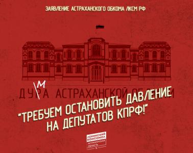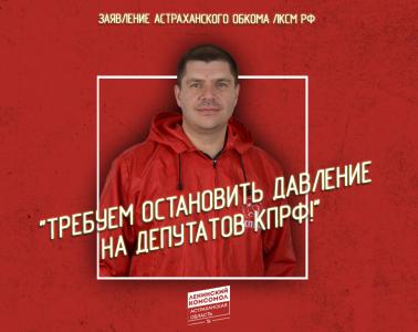 Мы, комсомольцы, молодые коммунисты, молодёжь Астраханской области, выражаем свой решительный протест против председателя Думы Астраханской области Игоря Мартынова и председателя думской комиссии по этике Валентины Антиповой, устроивших беспрецедентное давление на фракцию КПРФ и депутата-коммуниста, заместителя руководителя фракции КПРФ в Думе Астраханской области Владислава Коняева.