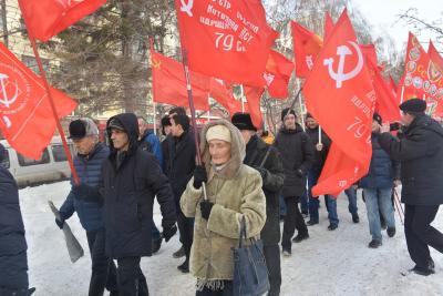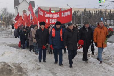 Митингу предшествовало шествие по аллее Красного проспекта. Колонну возглавляли лидеры КПРФ в Новосибирске — мэр города Анатолий Локоть, депутат Государственной Думы Ренат Сулейманов, секретари областного комитета Владимир Карпов, Алексей Русаков, Роман Яковлев, Глеб Черепанов. Колонна под флагами СССР, КПРФ и Знаменами Победы остановилась возле бюста прославленного новосибирца — «сталинского сокола» Александра Покрышкина. После этого Ренат Сулейманов поздравил собравшихся с Днем Советской армии и объявил митинг открытым.