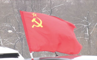 Встречные машины встречали колонну сигналами клаксонов. При этом невозможно было не заметить проявление классового сознания – трудяги-водители на грузовиках встречали колонну под красными флагами с серпом и молотом заметно активней, чем автовладельцы дорогих автомобилей.
