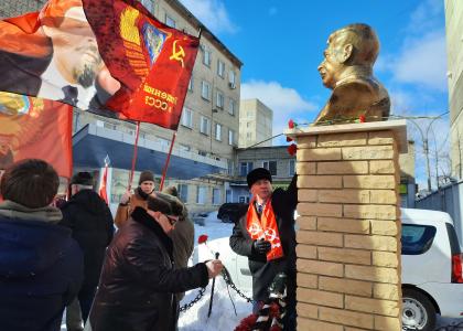 Коммунисты Тамбова 5 марта почтили память И.В. Сталина, проведя церемонию возложения цветов к бюсту, установленному возле обкома партии.