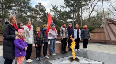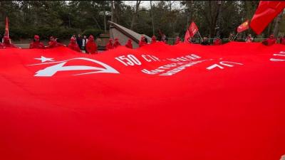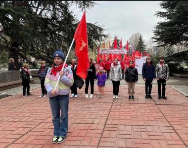 Сегодня юные патриоты Крымского республиканского отделения КПРФ совместно с коммунистами приняли участие в акции Союзной патриотической эстафеты Проекта «Наша Великая Родина»! И вместе со своими старшими товарищами развернули масштабную копию Знамени Победы.