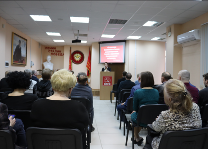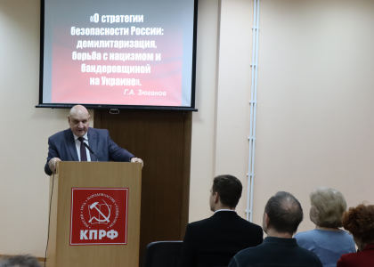 Сегодня в Сталинградском обкоме прошло очередное занятие в системе политической учебы, тема которого звучала так: «О стратегии безопасности России: демилитаризация, борьба с нацизмом и бандеровщиной на Украине».