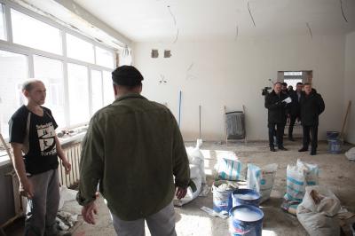 В здании детского сада №195, расположенного на улице Зорге, 44/1 идут ремонтные работы. В прошлом году его передали в ведение гимназии №7. Здесь оборудуют места для начальной школы и сохранят дошкольное учреждение.