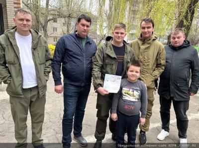Кроме этого, тульские и рязанские коммунисты посетили пункт временного размещения беженцев из Артемовска в Амвросиевке. Жители от всей души поблагодарили коммунистов за переданную им гуманитарную помощь, а это продукты питания, микроволновые печи. Сын одной из беженок подарил гостям собственный рисунок.
