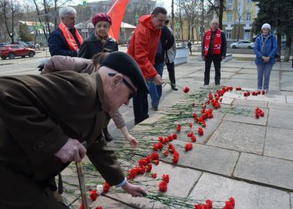 Вологодские коммунисты возлагают цветы к памятнику П.И. Беляеву.