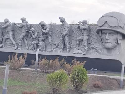 Поднимаемся по широкой лестнице. Справа – четыре «старых» рельефа, посвященных героям Великой Отечественной. Слева – три новых, в лицах изображенных на них современников проступают знакомые черты Гиви, Жоги, Корсы….