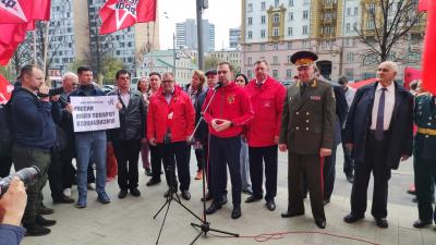 22 апреля 2023 года на Новинском бульваре напротив здания посольства США собрались москвичи, жители Подмосковья и других регионов нашей Родины на встречу с депутатами Государственной Думы из фракции КПРФ и другими народными избранниками-коммунистами из российских законодательных органов разного уровня. Она была приурочена к работе Антифашистского форума в Минске, в котором принимают участие более 50 стран мира. Вел встречу и выступил на ней заместитель Председателя ЦК КПРФ, Руководитель Общероссийского штаба протестных действий В.И. Кашин.