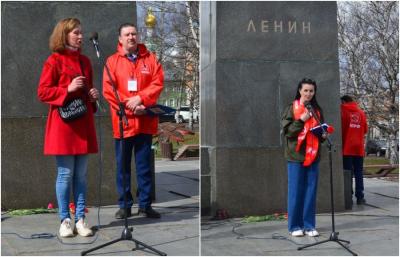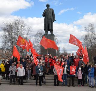 На митинге прозвучали песни советской эпохи. Цветы были возложены к памятникам В.И. Ленину на площади Свободы и в сквере Детского парка.
