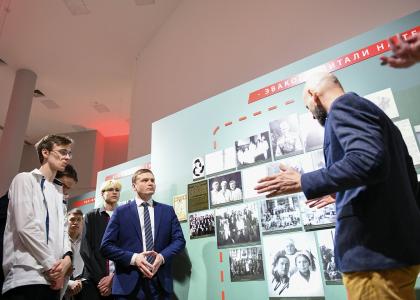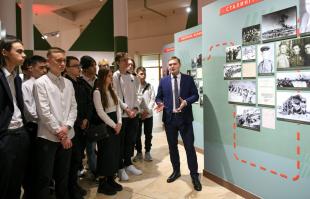 24 апреля в рамках акции «Прогулка со Знанием», организатором которой является Российское общество «Знание», в Национальном краеведческом музее им. Л.Р. Кызласова глава республики Валентин Коновалов совместно со специалистом учреждения провели экскурсию для студентов Хакасского политехнического колледжа по Залу боевой славы.