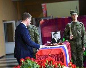 Церемония прощания, траурный митинг и гражданская панихида прошли в Черногорске, в ДК «Луначарский». Проводить героя в последний путь собрались его родные, близкие, коллеги, неравнодушные жители республики.