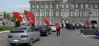 Начало и финиш маршрута колонны КПРФ – на площади Революции (ныне Театральной), откуда нескольких десятков автомобилей, украшенных красными флагами КПРФ, ЛКСМ и СССР, проехали по наиболее оживлённым улицам и площадям областного центра.