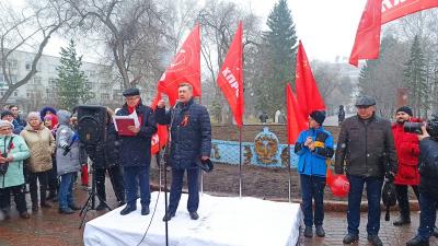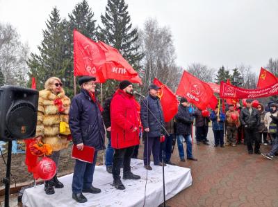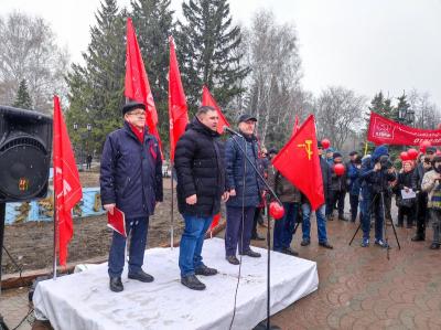 Перед собравшимися выступил член Президиума ЦК КПРФ, мэр Новосибирска Анатолий Локоть. Он передал собравшимся привет от Председателя ЦК КПРФ Геннадия Зюганова — коммунисты планируют провести митинги и шествия по всей стране в честь Дня международной солидарности трудящихся: