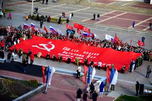 Губернатор отметил, что Красное знамя Победы и сегодня объединяет нас. Вокруг него сплотились все патриоты, все, кому дорого будущее Отечества, кто свято чтит подвиг народа. «Под этим знаменем наши воины освобождают от неонацизма Донбасс. Герои специальной военной операции – прямые продолжатели легендарных боевых традиций Великой Отечественной», - сказал Андрей Клычков.