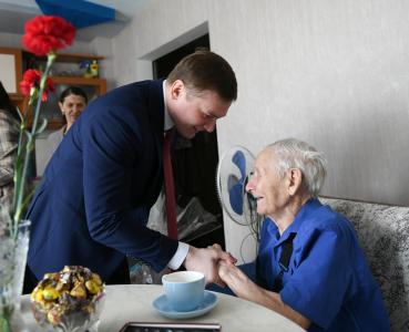 В преддверии Дня Победы глава Хакасии Валентин Коновалов побывал в гостях у ветерана Ивана Егоровича Шмакова